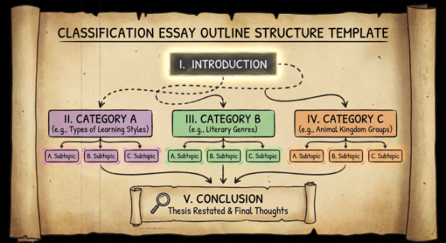 These classification essay outline templates give you proven structures that produce clear, organized essays. Copy the templates, fill in your specific content, and you've built the framework for successful classification analysis.
