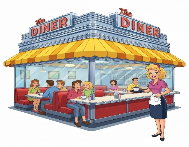 The diner glows like a beacon on the empty highway, neon pink and blue reflecting off wet pavement, fluorescent lights blazing through plate-glass windows that reveal everything inside like a stage set for some late-night performance where nobody bought tickets. I pull into the cracked parking lot at twelve-thirty on a Tuesday, because some nights you just can't sleep, and sitting alone at home makes the insomnia worse.