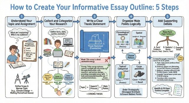 Ready to turn your outline into a complete essay? Follow the step-by-step informative essay writing guide for detailed instructions on drafting, revising, and polishing your work.